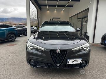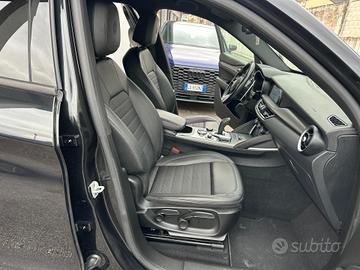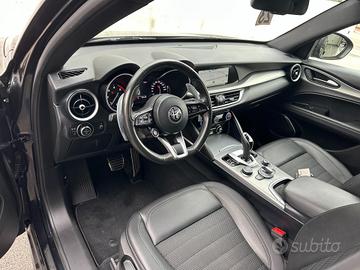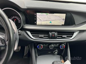 Sedili anteriori con 6 regolazioni manuali, Volante in pelle sportivo, Funzione Air Quality System (AQS), Batticalcagno in alluminio, Rivestimento Leva Cambio in Pelle Sportiva, Clima automatico bi-zona, Alfa Romeo Connected Services, Bocchette climatizzazioni posteriori, Light body cover (copertura di trasporto), Luci di cortesia su maniglie esterne, Noise Reduction, Pedaliera Sportiva In Alluminio, Palette cambio al volante in alluminio, Keyless entry (porte anteriori), Kit Riparazione Pneumatici, Coprimozzo Alfa bianco e nero, Cornici interne Nere, Finiture esterne Dark miron su calandra, skidplate, terminali di scarico, logo Stelvio, Inserti in Alluminio, Apertura/chiusura centralizzata con telecomando, Quadro strumenti con display TFT a colori da 7", Alfa Connect 3D Nav 8.8" Multitouch (Radio, Navigatore 3D, Mp3, Aux-in, Bluetooth), Wireless charger, Sintonizzatore Radio DAB, Cerchi in lega da 19" sport, Ingresso prese USB posteriori (2), Apple CarPlay / Android Auto, Start&Stop, Specchi retrovisori esterni elettrocromici,