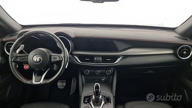 AEB Autonomus Emergency Brake - Accensione automatica degli abbaglianti - Accensione automatica degli anabbaglianti con sensore crepuscolare - Active Cruise Control (ACC) - Airbag frontali - Alfa Active Suspension - Alfa Connect 3D Nav 8,8" Multitouch - Alfa Connected Services - Alfa DNA Drive Mode System - Apertura/chiusura centralizzata con telecomando - Apple CarPlay/Android Auto - Batticalcagno in alluminio - Bloccaggio differenziale posteriore - Bocchetta climatizzazione sedili posteriori - Body color Nero Vulcano - Calandra antracite nero lucido - Cambio automatico a 8 rapporti - Cannocchiale cluster 12.3" Full TFT - Cerchi in lega da 21" a 5 fori bruniti con pneumatici 255/40 - Climatizzatore automatico bizona - Coprimozzo Alfa bianco e nero - Cornice cristalli esterna nera lucida - Cristalli posteriori oscurati - Disattivazione airbag passeggero - Doppio terminale di scarico nero - Fari full Led Smart Matrix adattivi e funzionalità dinamiche - Fari posteriori full LED con