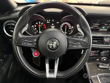 PREZZO NOLEGGIO PER CERIMONIA EURO 1.000 UNICO PROPRIETARIO TAGLIANDI UFFICIALI ALFA ROMEO KM. 129.481 IMMATRICOLATA 06 GIUGNO 2019 OPTIONAL Tetto panoramico / tettuccio regolabile (vetro), vetri lat. post. e lunotto oscurato ALLESTIMENTO DI SERIE Motore 2.9L V6 Bi-Turbo benzina da 375 kW (510 CV) e 600 Nm di coppia, derivazione da tecnologie Ferrari, airbag lat., airbag lato guida / lato passeggero airbag lato passeggero disinseribile, aiuto parcheggio elettronico ant. e post., Allestimento int.: interni Scuro, Montante tetto e padiglione in Nero, Allestimento int.: modanature int. carbonio, Allestimento int.: telaio il plancia cruscotto e pannello porta in Look Carbon, alloggiamenti Isofix per sedile bambini, alzacristalli elettr. ant. + post., apertura portellone elettr., assetto attivo con elettronico regolazione ammortizzatore (Active Suspension), Assistente pioggia freni (RBA), attivo Controllo momento sterzata, bracciolo ctr. ant. con vano portaoggetti, calandra ant. Antracite, cambio automatico - (8 rapporti), cerchi in lega antpost.: 9x20 / 10x20 (Classico), chiusura centralizzata con comando a distanza, climatizzatore automatico 2 zone, controllo frenata in curva, differenziale autobloccante (Q2), Electronic Traction Control, elettron. controllo stabilità, elettron. regolatore di frenata, fanali post. led, fanali post. scuri, fendinebbia, sedili: Pelle alcantara, freno di stazionamento elettr., immobilizzatore (elettronico), impianto freni: Brembo, impianto regolazione velocità adattativo, impianto scarico doppio terminale, Infotainment-System: UConnect 3D Nav (schermo a colori 8,8") radioricevitore Digital (DAB), viva voce Bluetooth incl. Audio Streaming, presa AUX-IN, porta USB Keyless-Entry, lampeggiatori led in retrovisore est. integrato, luci stop con Funzione di emergenza, maniglie porta est. Alluminiumlook, modanature sottoporta (alluminio) con Logo, paraurti ant. e post. in Quadrifoglio Design, pedali alluminio, pedali sportivi, pianto