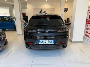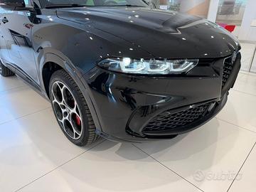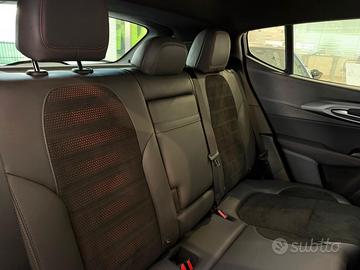Dotazione: Cambio automatico con palette al volante in alluminio, fari full LED matrix adattativi con funzionalità dinamiche, climatizzatore automatico bi-zona, cerchi in lega '19 diamantati nero lucido con pinze freno Brembo rosse, intelligent adaptive cruise control, lane departure warning, lane keep assist, FWD collision, Infotaiment '10.25 con navigatore, bluetooth & comandi al volante, apple carplay & android auto, ricarica wireless ,sensori di parcheggio anteriori & posteriori con telecamera posteriore con linee guida dinamiche, plancia in alcantara con doppia cucitura rossa, batticalcagno in alluminio, pedaliera sportiva, body kit dark miron lucido, cristalli posteriori oscurati, doppio terminale di scarico cromato, sospensione adattative Alfa Romeo Dual Stage, portellone elettrico con funzione hands free, specchietti esterni richiudibili, regolabili & riscaldabili elettricamente, passive entry, sedile posteriore frazionato 60/40 con appoggiatesta & attacchi isofix, volante sportivo in pelle, ambient light, regolazione lombare elettrica a 4 vie sedile conducente, TFT '12.3 digitale a colori, AEB con riconoscimento pedoni, specchietto retrovisore interno elettrocromico, riconoscimento segnaletica stradale, keyless GO, sensore pioggia, bracciolo centrale, abs, esp, airbag.