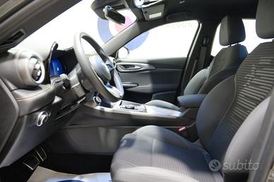 Alfa Romeo Tonale 1.5 160 CV MHEV con cambio automatico TCT7 a doppia frizione, nell'allestimento Sprint, immatricolata nel 2025. Questa vettura incarna perfettamente il DNA sportivo del marchio, combinando prestazioni ibride efficienti con uno stile inconfondibile e un pacchetto di dotazioni ai vertici della categoria. L'esperienza di guida è esaltata dalle leve al volante e da sistemi avanzati di assistenza alla guida (ADAS) che includono l'Adaptive Cruise Control, il Blind Spot Monitor, il controllo elettronico della corsia, il riconoscimento dei segnali stradali e la frenata d'emer
