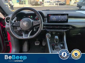 AEB con riconoscimento pedone, Alfa Connected Services, Ambient Lighting, Ambiente Nero, Avviso occupazione sedile posteriore, Badge specifico ""Speciale"", Body kit Dark Miron lucido con skidplate con inserti laterali e anteriori Miron opaco, Bracciolo centrale, Calotte specchi nero lucide con dettaglio ""tricolore"", Cannocchiale cluster 12,3"" Full TFT, Cerchi in lega da 20"" diamantati nero lucido con pneumatici 235/45 R20 non catenabili, Climatizzatore automatico bi-zona, Coprimozzo Alfa Romeo bianco e nero, Cristalli posteriori oscurati, Fari full led matrix adattivi e funzionalità dinamiche, Fari posteriori full led con tecnologia Infinity Mirroring ed effetto 3D, Finitura contorno esterno finestrini nero lucido, Intelligent Adaptive