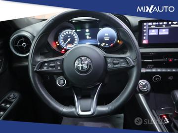 Luci di cortesia portiere anteriori e posteriori, Regolazione sedili manuale a 6 vie lato guidatore e passeggero, Volante sportivo con inserti in pelle, Sedile posteriore abbattibile 60/40 con ski pass e bracciolo poggiatesta centrale, Regolazione lombare elettrica a 2 vie, Climatizzatore automatico bi-zona, Alfa Connected Services, Contenuto tecnico riscaldatore abitacolo, Passive entry, Pedaliera in Metallo, Keyless go, Coprimozzo Alfa Romeo bianco e nero, Plancia con inserti in 3d e cuciture biscotto, Trilobo Alfa Romeo esagonale, V scudetto nero opaco, Sistema Infotainment da 10.25" con navigazione, 2 porte USB, Bluetooth e comandi vocali, Cannocchiale cluster 12,3" Full TFT, Wireless charging pad ventilato, Cerchi in lega da 18" diamantati nero lucido con pneumatici 235/50 R18, Prese Usb posteriori type a + c, Wireless apple car play / android auto, Body kit nero lucido con skidplate con inserti laterali e anteriori in tinta nero opaco, Calotte specchi nero lucide con dettaglio "tricolore", Specchietti esterni richiudibili elettricamente, Specchietti retrovisori esterni riscaldabili, Fari posteriori full led con tecnologia Infinity Mirroring ed effetto 3D, Luce abbagliante / anabbagliante automatica, Fari full led matrix adattivi e funzionalità dinamiche, Ambiente Nero, Sedili in tessuto nero con inserti in vinile con logo Alfa Romeo, Specchietto retrovisore interno elettrocromico, AEB con riconoscimento pedone, Rilevamento sonnolenza conducente, Avviso occupazione sedile posteriore, Lane Support System (Lane Departure Warning e Lane Keeping Assist), Riconoscimento segnaletica stradale, Intelligent Adaptive Cruise Control, Sensori Di Parcheggio Anteriori E Posteriori, Telecamera posteriore con griglie dinamiche, 360° camera, Blind spot monitor, Chiusura centralizzata senza chiave, Chiusura centralizzata telecomandata, Freno di stazionamento elettrico,