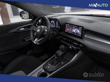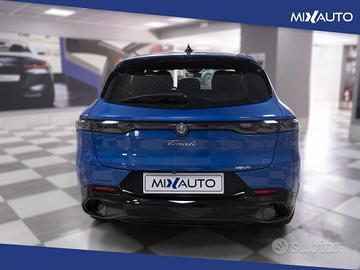 Luci di cortesia portiere anteriori e posteriori, Regolazione sedili manuale a 6 vie lato guidatore e passeggero, Volante sportivo con inserti in pelle, Sedile posteriore abbattibile 60/40 con ski pass e bracciolo poggiatesta centrale, Regolazione lombare elettrica a 2 vie, Climatizzatore automatico bi-zona, Alfa Connected Services, Contenuto tecnico riscaldatore abitacolo, Passive entry, Keyless go, Coprimozzo Alfa Romeo bianco e nero, Trilobo Alfa Romeo esagonale, V scudetto nero opaco, Sistema Infotainment da 10.25" con navigazione, 2 porte USB, Bluetooth e comandi vocali, Cannocchiale cluster 12,3" Full TFT, Wireless charging pad ventilato, Cerchi in lega da 18" diamantati nero lucido con pneumatici 235/50 R18, Prese Usb posteriori type a + c, Wireless apple car play / android auto, Body kit nero lucido con skidplate con inserti laterali e anteriori in tinta nero opaco, Calotte specchi nero lucide con dettaglio "tricolore", Specchietti esterni richiudibili elettricamente, Specchietti retrovisori esterni riscaldabili, Fari posteriori full led con tecnologia Infinity Mirroring ed effetto 3D, Luce abbagliante / anabbagliante automatica, Fari full led matrix adattivi e funzionalità dinamiche, Ambiente Nero, Sedili in tessuto nero con inserti in vinile con logo Alfa Romeo, Specchietto retrovisore interno elettrocromico, AEB con riconoscimento pedone, Rilevamento sonnolenza conducente, Avviso occupazione sedile posteriore, Lane Support System (Lane Departure Warning e Lane Keeping Assist), Riconoscimento segnaletica stradale, Intelligent Adaptive Cruise Control, Sensori Di Parcheggio Anteriori E Posteriori, Telecamera posteriore con griglie dinamiche, 360° camera, Blind spot monitor, Chiusura centralizzata senza chiave, Chiusura centralizzata telecomandata, Freno di stazionamento elettrico, Luci diurne, Sistema di chiamata d'emergenza,