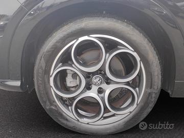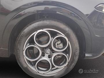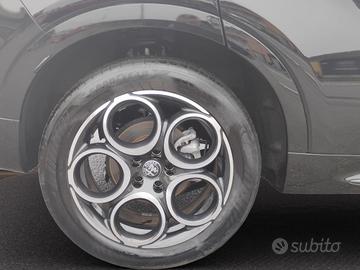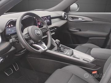 Luci di cortesia portiere anteriori e posteriori, Regolazione sedili manuale a 6 vie lato guidatore e passeggero, Volante sportivo con inserti in pelle, Sedile posteriore abbattibile 60/40 con ski pass e bracciolo poggiatesta centrale, Regolazione lombare elettrica a 2 vie, Climatizzatore automatico bi-zona, Alfa Connected Services, Contenuto tecnico riscaldatore abitacolo, GSR2, Passive entry, Pedaliera in Metallo, Keyless go, Body kit nero lucido, 2 cap posteriori dei terminali di scarico nero goffrato, Coprimozzo Alfa Romeo bianco e nero, Plancia con inserti in 3d e cuciture biscotto, Trilobo Alfa Romeo esagonale, V scudetto nero opaco, Sistema Infotainment da 10.25" con navigazione, 2 porte USB, Bluetooth e comandi vocali, Cannocchiale cluster 12,3" Full TFT, Cerchi in lega da 18" diamantati nero lucido con pneumatici 235/50 R18, Prese Usb posteriori type a + c, Wireless apple car play / android auto, Calotte specchi nero lucide con dettaglio "tricolore", Specchietti esterni richiudibili elettricamente, Specchietti retrovisori esterni riscaldabili, Fari posteriori full led con tecnologia Infinity Mirroring ed effetto 3D, Luce abbagliante / anabbagliante automatica, Fari Full Led, Ambiente Nero, Sedili in tessuto nero con inserti in vinile con logo Alfa Romeo, Specchietto retrovisore interno elettrocromico, AEB con riconoscimento pedone, Rilevamento sonnolenza conducente, Avviso occupazione sedile posteriore, Lane Support System (Lane Departure Warning e Lane Keeping Assist), Riconoscimento segnaletica stradale, ABS,
