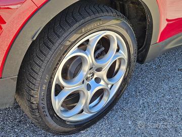 Luci di cortesia portiere anteriori e posteriori, Regolazione sedili manuale a 6 vie lato guidatore e passeggero, Volante sportivo in pelle, Bracciolo centrale, Sedile posteriore abbattibile 60/40 con ski pass e bracciolo poggiatesta centrale, Regolazione lombare elettrica a 4 vie lato guidatore, Climatizzatore automatico bi-zona, Alfa Connected Services, Passive entry, Keyless go, Coprimozzo Alfa Romeo bianco e nero, Plancia con inserti in 3D