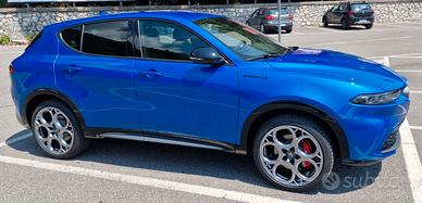 MOTORE E PRESTAZIONI • Potenza totale: 280 CV (1.3 turbobenzina + elettrico 122 CV) • Trazione integrale Q4, cambio automatico 6 rapporti • 0-100 km/h: 6,2 secondi, velocità max 206 km/h • Autonomia elettrica: 80+ km città, totale 600+ km • Consumi: 1,14 l/100 km, emissioni CO2: 26-30 g/km DESIGN ESTERNO ESCLUSIVO • Badge "Speciale" e body kit Dark Miron opaco • Fari Full LED Matrix adattivi + posteriori Infinity Mirroring • Cerchi 20" con pneumatici 235/40, pinze Brembo rosse • Cristalli oscurati, calotte specchietti nere con tricolore INTERNI PREMIUM • Sedili Alcantara (riscaldati), plancia Soft-Touch con finiture alluminio • Sedile posteriore abbattibile 60/40 con Ski Pass • Volante sportivo pelle (riscaldato), pedaliera alluminio, ambient lighting • Cluster digitale 12,3" + touch screen 10,25" CLIMA E COMFORT • Climatizzatore automatico bi-zona • Keyless Go • Passive Entry • Specchietto retrovisore interno elettrocromico • Specchietti retrovisori esterni riscaldabili TECNOLOGIA AVANZATA • Apple CarPlay/Android Auto wireless, ricarica smartphone wireless • Cannocchiale cluster 12,3" Full TFT digitale • Schermo touch da 10,25" per infotainment • Connettività Alfa Connect, certificazione NFT • ADAS Livello 2: cruise control adattivo, lane keeping, AEB • Climatizzatore bi-zona, keyless go RICARICA • Batteria 15,5 kWh, ricarica rapida 2,5h (wallbox 7,4 kW) • Cavo MODE 2 incluso, accesso ZTL garantito SPAZIO • 5 posti, bagagliaio 450 litri • Dimensioni: 4.530x1.840x1.600 mm