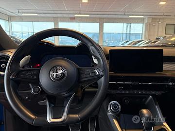 ACCESSORI: cerchi in lega 19'' a 5 fori diamantati nero lucido, pinze freno rosse, body kit Veloce, portellone post.re aprib. elettr. (hands free), luci diurne a led, proiettori direzionali Full Led Matrix adattivi (con HBA), rilevatore ostacoli ant.re e post.re, retrovisori esterni regolab. e ripieg. elettr. (calotte nere), climatizzatore autom. bizona, sist.ma di infotainment 10.25" (con Radio DAB, sistema di navigaz. satellit. 3D, connettività per smartphone wireless e telecam. post.re), cluster 12.3'' Full TFT, wireless smartph. charg., sensore luci e pioggia, volante sportivo in pelle multif. con paddle cambio in allum., Adaptive Cruise Control, airbags, vdc con Hill holder, AEB, Lane Keeping Assist, Traffic sign recogn., Driver Attention Assist, Alfa Romeo DNA, freno di stazion. elettr., keyless Entry&Start, 4 vetri elettrici, sedili in Alcantara traforata e tessuto tecnico soft-touch con cuciture rosse.