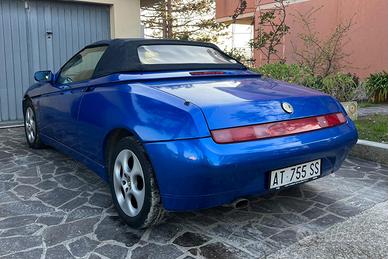 Alfaromeo Spider 916 Automobile iscritta Asi con C.r.s. e al RIAR Registro Italiano Alfa Romeo con placca targhetta iscrizione numerata. Anno 1997, km 190.000 ma motore sostituito nel 2012 (fattura) Allattivo avrà all’incirca 120000 km Distribuzione fatta a 185.000 Braccetti Scatola sterzo tanto altri lavori eseguiti fatturati e dimostrabili. Lunotto posteriore nuovo con cerniera. Treno gomme 90% Colore blue Atollo, blu metallizzato brillante molto vivo, con riflessi che virano verso il viola/azzurro a seconda della luce La macchina è perfetta, sound incredibile, motore e cambio tutto da godere. Trattativa dopo visione.