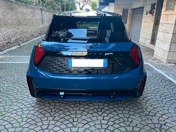 Cambio automatico, 190 kW. Immatricolata a Sett. 2025, 5000 Km, Volante con corona riscaldabile, Bullone antifurto, Indicatore pressione pneumatici, Set riparazione pneumatici, Volante Sportivo JCW, Antifurto con telecomando, Comfort Access, Kit pronto soccorso (Triangolo e cassetta medicazioni), Pacchetto specchietti interno ed esterni, Retrovisore interno, autoanabbagliante, Aggancio seggiolino bambini con disattivazione airbag, Sedili anteriori riscaldabili, Rivestimento padiglione interno antracite, Sedili sportivi John Cooper Works, Cavo di ricarica pubblica tri-fase, Fast charging AC, Avvisatore acustico per pedoni, MINI Experience Modes, Luci bi-LED con funzione, Cornering Light, High Beam assistant, Driving Assistant, Active Guard, Radio DAB, Sistema di altoparlanti, HIFI Surround Harman/Kardon, Head-Up Display, TeleServices, Chiamata di emergenza, Wireless Charging, Personal eSIM, Scritte sul cruscotto in inglese, Safety Information, Codice interno refrigerante, Model Year code, Indigo Sunset Blue, 18'' John Cooper Works Mastery Spoke Black con pneumatici sportive, Eco-Pelle/Tessuto JCW Black, Sport Stripes nere, Tetto e specchietti neri, Pacchetto XL, Tetto panoramico in vetro, Vetri posteriori e lunotto oscurati, Sedile attivo per guidatore, Regolazione elettrica sedili anteriori con funzione memory (sedile di guida), Telecamera interna, Driving Assistant Plus, Parking Assistant Plus, MINI Navigation AR. NO IVA Esposta