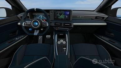 2 USB type C anteriori ricarica e dati - ABS - AEBS (Sistema di frenata emergenza attiva con riconoscimento - Accensione automatica fari e tergicristalli con sensore pioggia - Airbag frontali conducente e passeggero - Airbag laterali conducente, passeggero a tendina - Alzacristalli anteriori elettrici impulsionali - Alzacristalli posteriori elettrici impulsionali - Ambient lighting anteriore e posteriore a 4 modalità - Cambio automatico - Caricatore di bordo da 11kW / DC 100kW - Caricatore di bordo trifase da 11kW / DC 100kW - Caricatore smartphone wireless - Cavo di ricarica Modo 3 da 6,5m con presa Tipo 2 da 11kW - Centro del volante nero con logo Alpine - Cerchi in lega da 19" - Chiusura centralizzata - Climatizzatore automatico - Commutazione automatica abbaglianti/ anabbaglianti - Console centrale con comandi cambio A110 con bracciolo e vano portaoggetti - Controllo pressione pneumatici - Coprimozzo nero sui cerchi con logo Alpine - Cruise control - Design cerchi da 19'' Iconic Noir Brillant - Distance warning (avviso distanza di sicurezza) - Driver attention alert (rilevatore stanchezza conducente) - Driver display digitale 10.3'' - E call - ESC (electronic stability control) - ESP (controllo elettronico della stabilità) - Emblema Alpine sulla finacata anteriore - Fari full LED anteriori - Freno di stazionamento elettrico con autohold - Hill start assist - Intelligent adaptive cruise control - Intelligent speed as
