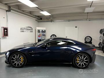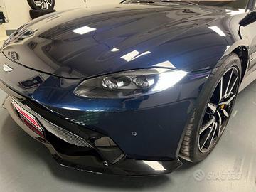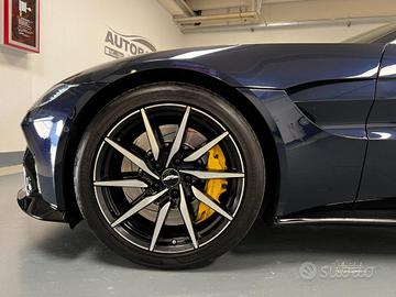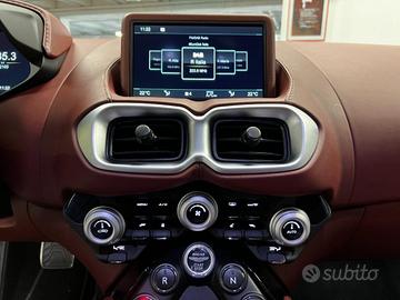Sedili con memoria della posizione, Sedili sportivi, Volante in pelle in colore nero, Regolazione manuale del piantone dello sterzo, Gruppi ottici posteriori rossi, Inclinazione verso il basso dello specchietto retrovisore in retromarcia, Moquette abitacolo, Regolazione automatica della temperatura con controllo della climatizzazione bizona, Schermo LCD da 8,0", Avviamento/arresto senza chiave, Finitura cornice finestrino brillante, Finiture interne Satin Silver, Fregio laterale in tinta con carrozzeria, Griglia anteriore in titanio, Inserto di finitura Gloss Black, Inserto diffusore posteriore e lamelle in colore Grafite, Stemmi alati smaltati, Terminali di scarico doppi in acciaio inossidabile in colore Silver, Allarme antifurto e immobilizzatore, Impianto audio Aston Martin, Tecnologia di streaming audio e telefono Bluetooth A2DP, Navigatore satellitare integrato, Radio DAB e AM/FM, Pneumatici estivi,