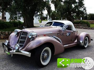 Chilometraggio: 29000 Condizioni: d'epoca Immatricolazione: 06/1974 Tipologia: Cabrio Carburante: Benzina Tipo di cambio: Automatico Autoradio, Bracciolo, Cerchi in lega, Cerchioni in acciaio, Fendinebbia, Interni in pelle, Ruotino, Tettuccio apribile Link Motors Roma Tiburtina propone in vendita, Auburn Speedster 851 Super-charged / Targa Oro ASI / Finanziabile / Visibile a BARI Possibilità di: Finanziamento finalizzato in sede Garanzia meccanica 12/72 mesi ( valida in tutta Italia ) Consegna in tutta Europa, con gestione della trattativa e acquisto a distanza. Immatricolata nel 1974 Motore Ford 5.7 V8 Solo 29000 miglia percorse Replica ufficiale con marchio Auburn Targa e documenti italiani Targa Oro Asi Restauro professionale Dotata di hard top originale molto raro Veicolo raro ed in eccellenti condizioni La vettura ha telaio e carrozzeria identiche alla versione originale ed è marchiata Auburn sul libretto e telaio Dai un’occhiata al nostro VIDEO: https://sitoweb/watch?v=Sdup-nTngQ4 La Auburn Speedster è stata un'auto americana costruita dalla Auburn Automobile Company di Auburn nello stato dell'Indiana. La prima Auburn 8 fu lanciata nel 1925 e ribattezzata 8-88 nel 1926 quando fu dotata di un motore Lycoming 4.8 a valvole laterali da 68 BHP (69CV). Così rimase fino al 1930 quando fu sviluppato un motore da 115 BHP che diede anche il nome al modello Speedster 115. Il resto dell'auto era essenziale. Le sospensioni erano tutte a molle semi ellittiche e, dopo gli esperimenti con i freni idraulici, la Auburn fu dotata di freni meccanici. La scatola del cambio a tre marce era incorporata al motore. L'appariscente carrozzeria aperta a due posti disegnata dal Conte Alexis de Sakhnoffsky richiamava la coda di una barca ed aveva un parabrezza a V. Nel 1930 la 115 divenne la 125 e fu pubblicizzata come un'auto da corsa con il comfort di una vettura chiusa, aveva una versione da 125BHP del motore Lycoming che consentiva di raggiunger