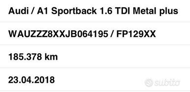 AUDI A1 BICOLORE ,cc1.6TDI 115 CV allestimento METAL PLUS , 5 PORTE , APRILE 2018 , EURO 6 , 185404 km ,cambio manuale a 5 marce
