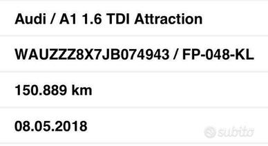 AUDI A1 SPB BICOLORE cc1.6TDI 115 CV allestimento SLINE (esterno) , 5 PORTE , MAGGIO 2018 , EURO 6 , 150889 km , cambio manuale a 5 marce