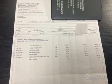 AUTO TENUTA CON MOLTA CURA ULTIMA FOTO ( una parte della nostra fattura d'acquisto ) :ALLESTIMENTO -TELAIO - TARGA ESTERA ( FRANCIA ) - KM - ANNO D'IMMATRICOLAZIONE AUDI A1 SPB BICOLORE cc1.6TDI 115 CV allestimento SLINE (esterno) , 5 PORTE , MAGGIO 2018 , EURO 6 , 150889 km , cambio manuale a 5 marce TETTO NERO – PACCHETTO ESTERNO SLINE – FARI FULL LED ANTERIORI E POSTERIORI – NAVIGATORE – SPOILER POSTERIORE – SENSORI DI PARCHEGGIO POSTERIORI Ultimo tagliando: 29/07/2024 Chilometraggio ultimo tagliando: 121.669 km REVISIONE DA FARE AD APRILE 2026 DUE CHIAVI CON TELECOMANDO Ottime condizioni generali interne, esterne e meccaniche Garanzia e possibilita' di finanziamenti agevolati SI VALUTANO PERMUTE No scambi . No perditempo. No proposte assurde , solo gente seria realmente interessata all'acquisto . L'auto è disponibile a Sommatino (CL) in viale Fontaine 10 ( vicino la caserma dei carabinieri ) per qualsiasi vostra prova e controllo presso meccanico di vostra fiducia . Non esitate a contattarmi per qualsiasi altra informazione alla mia email o direttamente al mio cell: anche whatsapp Prezzo : 12900 euro - 1 ANNO DI GARANZIA CONFORMGEST SPA ( COMPLETA ) INCLUSA NEL PREZZO - PASSAGGIO DI PROPRIETA’ ESCLUSO