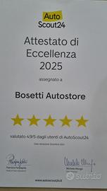 Nota bene: La dotazione tecnica e gli accessori indicati nella presente scheda potrebbero non coincidere con l’effettivo equipaggiamento del veicolo, a causa della non uniformità dei dati pubblicati dai diversi portali. Ci scusiamo per l’inconveniente e vi invitiamo a verificare le caratteristiche dello specifico veicolo. Bosetti AutoStore Km Srl declina ogni responsabilità per eventuali involontarie incongruenze, che non rappresentano in alcun modo un i