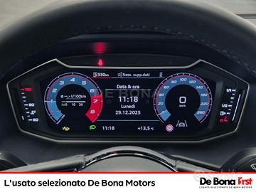 6 altoparlanti passivi, Accenti al cruscotto in nero lucido, Adaptive speed assist (Dispositivo di assistenza adattivo alla velocità), Airbag anteriori, Airbag laterali per la testa, Appoggiabraccia centrale anteriore, Attrezzi di bordo, Audi connect navigation amp; infotainment (3 anni), Audi pre-sense front, Audi smartphone interface, Bocchette d'aereazione in nero lucido Di serie anche con WQS, Cerchio in lega di alluminio da 17", 5 razze a stella, Chiamata di emergenza e assistenza con Audi connect Remote amp; Control, Chiave con telecomando, Cielo vettura in tessuto grigio titanio, Cinture anteriori regolabili in altezza, Climatizzatore automatico Con regolazione in funzione dell'irradiazione solare; regola elettronicamente temperatura, portata e distribuzione d'aria; comprende ricircolo d'aria automatico, sensore luce/pioggia/umidita, filtro combinato, regolazione dell'aria dinamica, pulsante di sbrinamento separato per il parabrezza e condotto per zona piedi posteriore, Controllo elettronico della stabilità (ESP), Denominazione modello senza indicazione della tecnologia, Dettagli verniciati in color grigio diamante, Digital cockpit da 10,25quot;, Disattivazione airbag anteriore, Estetica S line, Fari anteriori e posteriori in tecnica led, con indicatori di direzione dinamici posteriori, Fari retronebbia, Freni anteriori e posteriori a disco, Immobiliser, Interfaccia Bluetooth, Isofix, Kit Riparazione Pneumatici, Lane departure warning (dispositivo di assistenza per mantenimento di corsia), Limitatore di velocità, Listelli in alluminio e logo S, Look alluminio nell'abitacolo, Modanature standard, Monitoraggio pressione pneumatici, Pacchetto luce diffusa in tecnica led, Panca posteriore abbattibile (60:40) con 2 appoggiatesta regolabili, Parabrezza anteriore atermico, Predisiposizione per MMI navigation plus, Radio digitale (DAB),