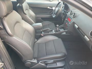 Audi A3 2.0tdi 140cv 3porte S-line interno,esterno,interni pelle tessuto,cielo nero,cambio manuale 6 marce,Anno 2008 km 219000,sensori di parcheggio posteriori,fari bixeno,consumi bassi, comandi al volante,Tetto apribile,clima automatico bzona,vetri elettrici,cerchi in lega da 17 gommata al 90%,vetri privacy,doppie chiavi,volano rumoroso(appena cambiato albero a camme ecc...fatto anche cinghia distribuzione)Euro 6500,00 Garanzia 12 mesi...auto visibile a Senigallia via Canaletto 24