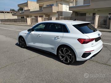 vendo bellissima Audi A3 35 TDI 2.0 150cv anno 2022 novembre accessori cambio automatico navigatore palette f1 al volante fari oxeno full led direzionali fari additivi automatici sensori parcheggio anteriori e posteriori frenata assistita d’emergenza pilota automatico avvertimento fuori carreggiata Assistenza pedonale park assist, start and stop, varie modalità di guida, fari posteriori led con freccia dinamica, radio bluetooth Clima bi-zona automatico, varie modalità di guida del quadro strumenti, allestimento S-line interno ed esterno doppie chiavi comandi al volante, auto full optional, Cerchi in lega da 18 gomme al 60% auto in perfette condizioni di tutto, prezzo €24.200