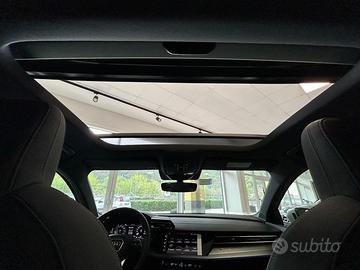 Mod. S LINE Cambio automatico S tronic a 7 rapporti Tessuto Pulse/Pelle Nero con cuciture grigio roccia Predisposizione per gancio traino Tetto panoramico apribile in vetro Pacchetto look nero plus Inserto alla plancia in alluminio Spectrum scuro, accenti in grigio vulcano SONOS 3D Premium Sound System Telecamere perimetrali Proiettori a LED Audi Matrix con gruppi ottici posteriori a LED Pacchetto assistenza e parcheggio pro con pacchetto safety plus: Adaptive cruise assist con emergency assist, Assistente agli ostacoli con assistente alla svolta (turn assist), Assisted lane change, Audi pre sense rear (sistema assistenza al traffico trasversale posteriore), Audi pre sense basic, Sensori di parcheggio anteriori e posteriori con park assist plus, Side assist con exit warning e rear cross-traffic assist Vetri laterali posteriori e lunotto oscurati Pacchetto luci d'ambiente pro Cerchi Audi Sport, design a 5 razze doppie a Y, nero metallizzato da 18" Freno di stazionamento elettromeccanico con assistenza alla partenza Kit riparazione pneumatici Volante multifunzionale sportivo in pelle con Tiptronic Sedili anteriori regolabili manualmente Schienale del sedile posteriore ribaltabile Assistente agli ostacoli con assistente alla svolta (turn assist) Appoggiabraccia centrale anteriore Impianto di regolazione della velocità incluso limitatore della velocità Porte USB tipo C posteriori Sensore pioggia/luci MMI Radio Plus Smartphone Interface Pacchetto Climatizzazione plus: Sedili anteriori riscaldabili, Climatizzatore automatico a tre zone Pacchetto Comfort Plus: Specchietto retrovisivo interno schermabile automaticamente, senza cornice, Specchietti retrovisivi esterni regolabili, riscaldabili, ripiegabili elettricamente e con antiabbagliamento, Supporto lombare a 4 vie per i sedili anteriori, a reg. elettrica in senso orizzontale e verticale Sistema di riconoscimento della segnaletica basato su telecamera Ricezione Radio digitale (DAB) ACCESSOR