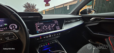 Audi A3 45 tfsi-e 245 cv, anno 2021, allestimento s-line, motore plug-in hybrid, full optional, android auto e apple car play wirless, mantenimento di corsia, adas, riconoscimento pericolo ecc ecc..manca solo il tettino apribile. luci ambiente, navigatore, battitacco s-line illuminato.