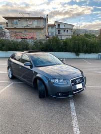 Audi A3 Anno 2008 cilindrata 2.0 170 CV allestimento S-Line interno ed esterno Comandi al volante Palette al volante Sensori di parcheggio Cerchi in lega 17" Vetri oscurati Tettuccio apribile Autoradio con Aux ABS Airbag laterale Airbag passeggero Airbag guida Airbag testa Chiusura Centralizzata Controllo elettronico della stabilità Controllo elettronico della trazione Appoggiatesta Posteriori Climatizzatore Correttore assetto fari Ricircolo aria Vetri elettrici Anteriore e Posteriore Volante regolabile Cambio Automatico Tettuccio Panoramico Servosterzo Retrovisori elettrici Retrovisori ripiegabili elettricamente Indicatore temperatura esterna Sedile guida regolabile in altezza Tergilunotto