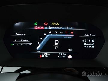 Compila i campi in pagina, sarai ricontattato per informazioni. Autovettura con certificazione Audi Prima Scelta Plus. I veicoli Audi Prima Scelta Plus, sono certificati dalla garanzia 110 controlli, fino a 4 anni di garanzia dall'acquisto su tutte le vetture con meno di 96 mesi o 150.000 km. Con la formula finanziaria Audi Value:Plus puoi decidere al termine del finanziamento se continuare a guidarla, sostituirla o restituirla. Le specifiche tecniche riportate per questo veicolo sono indicative. Nonostante gli sforzi fatti per garantire l'accuratezza delle info, potrebbero esserci inesattezze. Ti invitiamo a contattarci per verificare le informazioni, compilando i campi in pagina. Eventuali incongruenze tra le caratteristiche/dotazioni del veicolo dipendono dal variare dei listini non imputabili alla nostra volontà e non costituiscono un vincolo contrattuale. Il prezzo di vendita non comprende: passaggio di proprietà, bollo auto, spese per pratiche finanziarie.