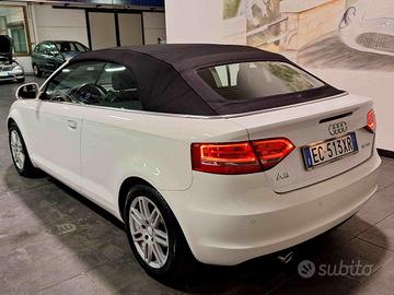 * AUDI A3 1.6 Tdi AMBITION CABRIOLET: * IMMATRICOLATA 19/07/2010-- * Km. 241.000-- * COLORE BIANCO CON CAPOTTE NERA-- * INTERNI PELLE NERA-- * CAMBIO MANUALE 5 MARCE-- * SEDILI SPORTIVI-- * ASSETTO SPORTIVO-- * FARI XENO-- * SENSORI PARCHEGGIO-- * BRACCIOLO-- * VOLANTE IN PELLE-- * VOLANTE SPORTIVO MULTIFUNZIONE-- * CLIMATIZZATORE ELETTRONICO BI-ZONA-- * CERCHI LEGA-- * RUOTINO-- * ABS, EBV (Ripartitore elettronico della forza frenante) EDS (Dispositivo antislittamento in partenza) Ugelli lavavetro riscaldati Sedile posteriore sdoppiato Assetto sportivo (sospensioni ribassate) Correttore assetto fari Specchietti retrovisivi esterni in tinta Illuminazione vano portaoggetti Profili laterali di protezione Filtro antipolline ASR (Controllo elettronico di trazione) Capote automatica Airbag passeggero Retrovisori termici regolabili elettricamente Servotronic Immobilizzatore elettronico Paraurti anteriori e posteriori in tinta centralizzato Sistema airbag laterale per la testa Cambio manuale Cicalina avvertimento luci accese e/o porta aperta Climatizzatore automatico Volante regolabile in altezza Pretensionatore cinture di sicurezza anteriori Sistema di controllo automatico, computer di bordo Airbag laterali Terza luce freno Cinture di sicurezza posteriori con limitatori d'escursione Proiettori fendinebbia Indicatore temperatura esterna Appoggiatesta anteriore regolabile Appoggiatesta posteriori Cinture di sicurezza ant. reg. in altezza, Limitatori d'escursione Spia consumo pastiglie freni Sedile posteriore abbattibile Retrovisori ripiegabili elettricamente Contagiri Sedili anteriori regolabili in altezza Volante regolabile in profondità Ricircolo aria Liquido lavavetro riscaldabile Termometro acqua Regolazione altezza cinture anteriori Vetri elettrici anteriori Chiave elettronica Sedili anteriori sportivi Versione Ambition Airbag guida Radio Chorus con lettore CD, Altoparlanti attivi PREZZO