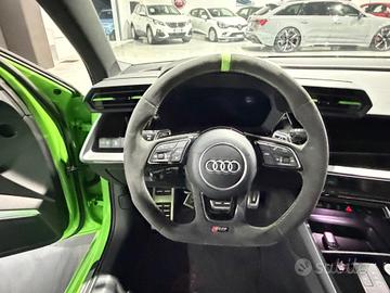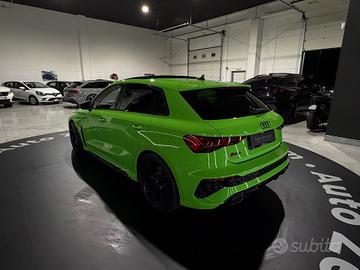 Audi RS3 Sportback 2.5 TFSI Quattro S-Tronic – 400CV – 2023 – Verde Kyalami – Full Optional AUTO ZENTRUM – Specialisti in auto sportive, premium e noleggio a breve/lungo termine Via delle Industrie, Montalto Uffugo (CS) – ⸻ Dati principali: • Marca: Audi • Modello: RS3 Sportback • Motore: 2.5 TFSI 5 cilindri Turbo Quattro S-Tronic • Potenza: 400 CV • Anno: 2023 • Chilometraggio: 4.089 km • Alimentazione: Benzina • Cambio: Automatico S-Tronic a 7 rapporti • Trazione: Integrale Quattro • Colore esterno: Verde Kyalami • Interni: Pelle Nappa fine nera con cuciture a contrasto RS ⸻ Dotazioni principali: • Cerchi in lega RS da 19” nero lucido • Fari Matrix LED con luci diurne dinamiche • Sedili sportivi RS con logo embossato e regolazione elettrica • Volante sportivo RS in pelle traforata con paddle in alluminio • Climatizzatore automatico bi-zona • Sistema di navigazione MMI Navigation Plus con MMI Touch • Audi Virtual Cockpit Plus con modalità RS Performance • Audi Drive Select con modalità RS Torque Splitter • Telecamera posteriore e sensori di parcheggio anteriori/posteriori • Impianto audio Bang & Olufsen 3D Premium Sound • Scarichi sportivi RS con terminali neri • Pacchetto estetico nero lucido • Vetri oscurati Privacy • Freni carboceramici anteriori RS • Tagliandi Audi certificati ⸻ Condizioni: Auto pari al nuovo, condizioni eccellenti sia di meccanica che di carrozzeria. Mai incidentata, pronta per visione e prova su strada. Garanzia ufficiale Audi attiva, con possibilità di estensione fino a 24 mesi. Disponibili finanziamenti personalizzati, permute usato e noleggio breve/lungo termine su richiesta. ⸻ Servizi Auto Zentrum: • Vendita auto selezionate premium e sportive • Finanziamenti e leasing su misura • Garanzia 12/24 mesi con copertura completa • Servizio di noleggio a breve e lungo termine • Consegna in tutta Italia • Import e ricerca veicoli su richiesta AUTO