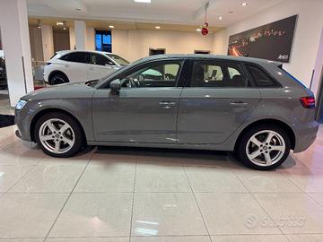AUDI A3 SPB 30 TDI S-tronic Grigio Qantum, 2019 con 140.000 chilometri certificati. Cambio automatico, navigatore, cruise control, start & stop, sensori di parcheggio, climatizzatore automatico, cerchi in lega. Per maggiori informazioni
