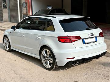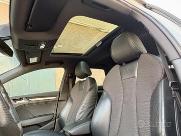 Vendo audi a3 sportback 2.0tdi 110kw 150cv cambio manuale a 6 rapporti versione S-Line interno ed esterno con pacchetto identityblack, immatricolata luglio 2017 ed ha percorso 186.000km originali,disponibilità a qualsiasi controllo. Autovettura dotata di tetto apribile elettricamente,gancio traino omologato originale audi,servosterzo,abs,doppio airbag,chiusura centralizzata con telecomando a distanza,4 alzacristalli elettrici,specchi elettrici,climatizzatore automatico bizona,board computer,autoradio cd-aux-sd,vivavoce bluetooth,drive select,sterzo 3 razze in pelle,volante multifunzione,interni in misto pelle-tessuto,bracciolo anteriore,cruise control,sensore luce e pioggia,sensori di parcheggio posteriori,barre al tetto,vetri scuri anteriori e posteriori,fari full led,stop a led con freccia dinamica,cerchi in lega da 18 pollici diamantati con gomme appena montate,antifurto block-sistem(valore 300euro),start&stop,..full..full.. tenuta in eccellenti condizioni,senza alcun segno di usura sugli interni e nessun graffio sulla carrozzeria,meccanicamente perfetta. Completa della doppia chiave di scorta dell'auto e dell'antifurto. Il prezzo di questa audi a3 è di 18.500euro. Garanzia usato 12 mesi. Si valutano permute. (ASTENERSI AFFARISTI O PERDITEMPO)