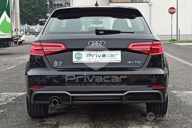 PERIZIA DELL'ESPERTO PRIVACAR: Audi A3 SPB 30 TDI S tronic Admired SLINE UNICO PROPRIETARIO - NEOPATENTATI - Immatricolata il 11/2018 - Km: 117,388 CERTIFICATI - L'auto si presenta in ottime condizioni generali. Monta motore diesel (Euro 6D) 1600cc da 116cv abbinato ad un cambio automatico a 7 rapporti, adatta a NEOPATENTATI. Vettura con CHILOMETRAGGIO CERTIFICATO parzialmente dimostrabile da fatture!!