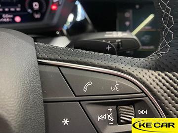 - Applicazione volante in look cromato, emblema S, impugnatura del volante in pelle traforata e cucitura a contrasto