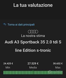 AUDI A3 35 TDI 150CV SLine Edition 7 S-Tronic Cambio Automatico doppia frizione a bagno d'olio, molto più robusto ed efficente, rispetto al 30 tdi 116cv con cambio S Tronic doppia frizione a secco! Bellissima ed accessoriata! *** MAI SINISTRATA*** Virtual Cockpit, Schermo digitale con Navigatore satellitare, Apple Carplay Android, Cerchi in lega da 18", Sensori di parcheggio anter e post + Retrocamera, Sedili Misto pelle e tessuto riscaldabili con logo SLine, Full Led ant e post, Pacchetto sportivo SLine interno ed esterno, Volante multifunzione in pelle traforata sportivo, Paddle al volante per il sequenziale, Ricarica Wireless Cellulare, Comandi vocali e tanti altri accessori! Tua a soli: 26'650€ + immatricolazione Prezzo promo senza permute! *Immatricoliamo in soli 6/7gg lavorativi! Disponibile a qualsiasi prova e visione da un Vs tecnico di fiducia! " Da diversi anni, siamo stati selezionati come concessionario dalla community " NON PRENDERMI PER IL CHILOMETRO" , Team che promuove l'immagine di Rivenditori onesti, che rispecchiano standard di vendita mantenendo la massima trasparenza e chiarezza sulle autovetture proposte, con km certificati! ** Potrebbero verificarsi errori di battitura delle specifiche tecniche e/o optional per via dei vari veicoli e modelli, pertanto si prega quindi di chiamare per accettarsi delle caratteristiche sopra elencati** Storico CarVertical disponibile. Km trascritti in fattura Zero sinistri Finanziabile Iva detraibile inclusa nel prezzo Nessun vincolo di finanziamento Possibilità di permuta Garanzia 12mesi, possibilità di estensione, valida su tutto il territorio nazionale Preventivi RC-Auto, Atti vandalici, Eventi atmosferici, Eventi socio-politici, Furto ed incendio Per informazioni e disponibilità: Antonia Cassi Auto srl Marina di Minturno ( LT ) Via Appia 1759 04026