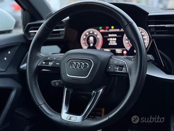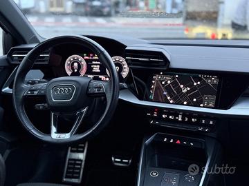 Audi A3 1.5 TFSI 150CV con allestimento S Line, motore benzina quattro cilindri turbo, abbinato a cambio che garantisce una guida fluida e reattiva. L'allestimento S Line comprende elementi estetici sportivi, cerchi in lega dedicati, assetto ribassato e dettagli interni specifici.