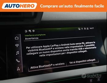 Chilometraggio: 42409 Condizioni: usato Immatricolazione: 10/2023 Tipologia: 4/5-Porte Carburante: Elettrica/Benzina Tipo di cambio: Automatico ABS, Adaptive Cruise Control, Airbag, Airbag laterali, Airbag Passeggero, Airbag testa, Alzacristalli elettrici, Android Auto, Apple CarPlay, Assistente abbaglianti, Autoradio, Bluetooth, Boardcomputer, Bracciolo, Cerchi in lega, Chiusura centralizzata, Chiusura centralizzata senza chiave, Climatizzatore automatico, 2 zone, Controllo elettronico della corsia, Controllo trazione, Controllo vocale, ESP, Fari LED, Frenata d'emergenza assistita, Freno di stazionamento elettrico, Immobilizzatore elettronico, Isofix, Leve al volante, Luci diurne, Luci diurne LED, MP3, Schermo multifunzione interamente digitale, Sedile posteriore sdoppiato, Sensore di pioggia, Sensori di parcheggio anteriori, Sensori di parcheggio posteriori, Servosterzo, Sistema di navigazione, Sistema di parcheggio automatico, Sound system, Specchietti laterali elettrici, Start/Stop Automatico, Touch screen, USB, Vetri oscurati, Vivavoce, Volante in pelle, Volante multifunzione PAGAMENTO ALLA CONSEGNA, RESO GRATUITO E 1 ANNO DI GARANZIA: SOLO SU AUTOHERO! _________________________________________ SEMPRE INCLUSO: - Pagamento alla consegna, prima vedi poi paghi - Reso gratuito, avrai 21 giorni e 500 km per cambiare idea - Finanziamento flessibile**, personalizzabile senza vincoli - Standard di qualità, veicoli ricondizionati e sanificati - Semplicità nell'acquisto, gestiamo noi tutte le pratiche - Acquisto sicuro, più di 1000 feedback positivi su Trustpilot - Garanzia 12 mesi inclusa, estendibile fino a 36 mesi _________________________________________ SALIAMO A BORDO! Tra le nostre Audi A3 Sportback, questa si presenta nell allestimento S line che valorizza l'anima sportiva della vettura con linee dinamiche e interni studiati per non farti mai stancare. Immatricolata a ottobre 2023, si presenta in ottime condizioni. L alimentazione Ben