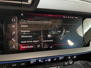 ABS, Adaptive Cruise Control, Adaptive Lighting , Airbag, Airbag laterali, Airbag Passeggero, Airbag testa, Alzacristalli elettrici, Android Auto, Apple CarPlay, Assistente abbaglianti, Autoradio, Autoradio digitale, Bluetooth, Boardcomputer, Bracciolo, Carica per smartphone a induzione, Cerchi in lega, Cerchi in lega da "18, Chiamata automatica per emergenze, Chiusura centralizzata, Chiusura centralizzata senza chiave, Chiusura centralizzata telecomandata, Climatizzatore, Climatizzatore automatico, 2 zone, Climatizzatore automatico, 3 zone, CLIMATRONIC, Controllo automatico clima, Controllo elettronico della corsia, Controllo trazione, Controllo vocale, Cruise Control, Divisori per bagagliaio, ESP, Fari direzionali, Fari full-LED, FARI FULL LED MATRIX , Fari LED, fari LED posteriori , Frenata d'emergenza assistita, Freno di stazionamento elettrico, Immobilizzatore elettronico, IMPIANTO SONORO HI-FI SONOS, Interni in pelle, Interno PELLE e TESSUTO S LINE , Isofix, Leve al volante, Limitatore di velocità, Luce d'ambiente, Luci di posizioni diurne, Luci diurne, Luci diurne LED, luci led interne , Luci led interne multicolore , Monitoraggio pressione pneumatici, Pacchetto invernale, Pacchetto sportivo, pacchetto sportivo S LINE, Park Distance Control, Pneumatici estivi, Riconoscimento dei segnali stradali, Schermo multifunzione interamente digitale, Sedile posteriore sdoppiato, Sedili riscaldati, Sedili sportivi, Selettore di Guida Sportiva , SELETTORE MODE , Sensore di luce, Sensore di pioggia, Sensori di parcheggio anteriori, Sensori di parcheggio posteriori, Servosterzo, sistema cruscotto VIRTUAL , Sistema di avviso di distanza, Sistema di chiamata d'emergenza, Sistema di navigazione, Sistema di Navigazione con CAR PLAY, Sospensioni sportive, Sound system, specchietti elettrici ripiegabili , Specchietti laterali elettrici, Sport P