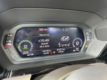 ABS, EBV (Ripartitore elettronico della forza frenante) - Adaptive cruise control - Airbag anteriore centrale - Airbag fullsize per conducente e passeggero - Airbag laterali anteriori integrati negli schienali dei sedili - Airbag per la testa - Alzacristalli elettrici ant. e post. con funzione attivaz. a pressione - Appoggiabraccia centrale anteriore - Appoggiatesta anteriori (2) e posteriori (3) regolabili - Assistente agli ostacoli con assistente alla svolta (turn assist) - Attacchi Isofix con Top Tether per i sedili esterni della panca posteriore - Audi connect navigation & infotainment plus - Audi pre sense front - Audi smartphone interface - Audi virtual cockpit (display 10,25") - Battitacchi anteriori con inserto in alluminio - Calotte specchietti retrovisori esterni in colore carrozzeria - Cambio S tronic - Cavo per ricarica industriale CEE (16A, 230V, mt. 0,9) - Cavo tipo E/F per ricarica domestica (10A, 1,6 metri con spina Schuko) - Cerchi in lega a 5 razze in design dinamico 8 J x 18 - Chiamata di emergenza e ass. Audi connect Remote & Control (con Apertura e chiusura della vettura) - Chiusura centralizzata con telecomando - Cielo dell'abitacolo in grigio acciaio - Climatizzatore automatico bizona - Disattivazione airbag lato passeggero - EDS (Dispositivo antislittamento in partenza) - Freno di stazionamento elettromeccanico - Immobilizzatore elettronico - Interfaccia Bluetooth - Kit riparazione pneumatici - Lane departure warning (disp. di assistenza per mantenimento di corsia) - MMI Radio Plus - Modalità di guida ibrida plug-in - Modalità