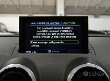 INTERNI IN PELLE TOTALE NERA, SEDILI RISCALDABILI, VOLANTE IN PELLE MULTIFUNZIONE, ADAPTIVE CRUISE CONTROL, CLIMATIZZATORE, ISOFIX, NAVIGATORE CARTOGRAFICO CON LETTORE CD, MEMORY CARD E SIM, USCITA USB E AUX, BLUETOOTH, WIRELESS, AUDI SMARTPHONE, PHONE BOX (CARICA TELEFONO SENZ