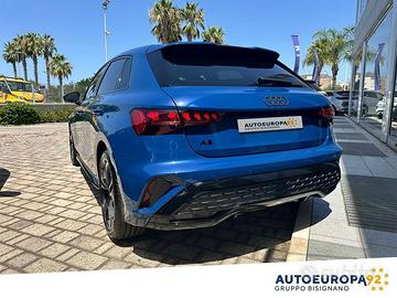 Airbag laterali anteriori con sistema di airbag per la testa e airbag centrale anteriore - Airbag per conducente e passeggero con disattivazione airbag passeggero - Applicazione volante in look cromato, emblema S - Appoggiabraccia centrale anteriore - Appoggiabraccia centrale in similpelle - Appoggiatesta anteriori - Appoggiatesta posteriori (3 unità) - Assetto sportivo - Assistente agli ostacoli con assistente alla svolta (turn assist) - Attrezzi di bordo - Audi Sound System - Audi drive select - Audi phone box light - Audi pre sense front - Battitacchi anteriori con inserto in alluminio e logo S line illuminato - Calotte specchietti retrovisori esterni in tinta con la carrozzeria - Cambio automatico S tronic a 7 rapporti - Cerchi in lega d'alluminio a 5 razze a Y, grigio grafite, torniti lucidi da 18" - Chiamata di emergenza e assistenza con Audi connect Remote & Control - Chiamata di emergenza prevista dalla legge - Cielo dell'abitacolo in tessuto nero - Cofano del bagagliaio ad apertura manuale - Controllo allacciamento cinture con dispositivo di rilevamento sedile occupato posteriore - Denominazione modello su parte posteriore - Elementi in look alluminio per interni - Fanali di coda a LED con indicatori di direzione dinamici - Freno di stazionamento elettromeccanico - Front cross-traffic assist - Sistema di assistenza al traffico trasversale anteriore - Immobilizzatore elettronico - Impianto di