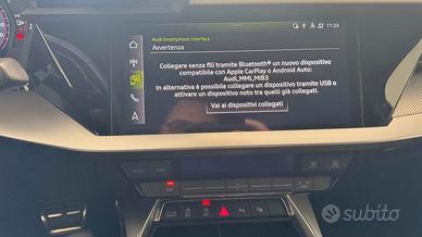 PREZZO ESCLUSO PASSAGGIO DI PROPRIETA' 12 MESI DI GARANZIA NESSUN OBBLIGO DI FINANZIAMENTO POSSIBILITA' DI ACQUISTO CON LEGGE 104/92 WWW.GSAMOBILE.NET Sedili anteriori normali, Volante multifunzione plus in pelle a 3 razze, Poggiabraccia centrale anteriore, Specchietti di cortesia illuminati, Cielo vettura in tessuto Grigio Acciaio, Tappetini anteriori e posteriori in velluto, Climatizzatore automatico bizona, Schienale del sedile posteriore ribaltabile, Specchietto interno schermabile automaticamente, senza cornice, Keyless go, Attrezzi di bordo, Kit primo soccorso e triangolo di emergenza, con due giubbottini d'emergenza, Kit riparazione pneumatici, Battitacchi anteriori con inserto in alluminio con logo S line illuminato, Inserti alla plancia e al cruscotto in vernice effetto seta Grigio Platino, Audi virtual cockpit da 10,25", Telecomando per apertura/chiusura porte senza Safelock, Immobilizer, Assetto sportivo, Ricezione radio digitale (DAB), MMI radio plus, Sistema di navigazione MMI plus con MMI touch, Cerchi in lega d'alluminio a 5 razze a Y, Grigio Grafite, torniti lucidi 8 J x 18 con pneumatici 225/40 R18, 2 Prese USB-C posteriori, Interfaccia bluetooth, Audi Smartphone Interface, Start&stop system per il recupero di energia, Specchietti retrovisori esterni regolabili, riscaldabili, ripiegabili elettricamente e con funzione automatica di antiabbagliamento, Specchietti retrovisori esterni in tinta con la carrozzeria, Spoiler posteriore S verniciato nello stesso colore della carrozzeria, Senza denominazione motorizzazione, Proiettori a LED con gruppi ottici posteriori a LED, Sensore luci/pioggia, Gruppi ottici posteriori alogeni, Sedili rivestiti in tessuto Index, Pacchetto esterno lucido, 3 poggiatesta posteriori regolabili manualmente, Airbag centrale (riempie lo spazio tra i sedili anteriori per ridurre l'urto tra guidatore e passeggero in caso di impatto laterale), Airbag anteriori laterali integrati nello schienale,