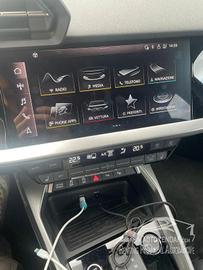 Sedili anteriori normali, Volante multifunzione plus in pelle a 3 razze, Poggiabraccia centrale anteriore, Specchietti di cortesia illuminati, Cielo vettura in tessuto Grigio Acciaio, Tappetini anteriori e posteriori in velluto, Climatizzatore automatico bizona, Assetto standard, Schienale del sedile posteriore ribaltabile, Specchietto interno schermabile automaticamente, senza cornice, Keyless go, Attrezzi di bordo, Kit primo soccorso e triangolo di emergenza, con due giubbottini d'emergenza, Kit riparazione pneumatici, Battitacchi anteriori con inserto in alluminio con logo S line illuminato, Inserti alla plancia e al cruscotto in vernice effetto seta Grigio Platino, Audi virtual cockpit da 10,25'', Telecomando per apertura/chiusura porte senza Safelock, Immobilizer, Ricezione radio digitale (DAB),