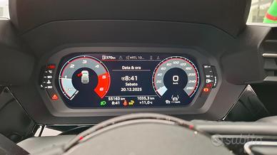 Sedili anteriori normali, Volante multifunzione plus in pelle a 3 razze, Poggiabraccia centrale anteriore, Specchietti di cortesia illuminati, Cielo vettura in tessuto Grigio Acciaio, Tappetini anteriori e posteriori in velluto, Climatizzatore automatico bizona, Assetto standard, Schienale del sedile posteriore ribaltabile, Specchietto interno schermabile automaticamente, senza cornice, Keyless go, Attrezzi di bordo, Kit primo soccorso e triangolo di emergenza, con due giubbottini d'emergenza, Kit riparazione pneumatici, Inserti alla plancia e al cruscotto in vernice effetto seta Grigio Platino, Audi virtual cockpit da 10,25'', Telecomando per apertura/chiusura porte senza Safelock, Immobilizer, Ricezione radio digitale (DAB), MMI radio plus, Sistema di navigazione MMI plus con MMI touch, Cerchi in lega d'alluminio a 5 razze doppie 7 J x 16 con pneumatici 205/55 R16, 2 Prese USB-C posteriori, Interfaccia bluetooth, Audi Smartphone Interface, Start&stop system per il recupero di energia, Specchietti retrovisori esterni regolabili, riscaldabili, ripiegabili elettricamente e con funzione automatica di antiabbagliamento, Specchietti retrovisori esterni in tinta con la carrozzeria, Spoiler posteriore verniciato nello stesso colore della carrozzeria, Proiettori anteriori in tecnologia LED, Sensore luci/pioggia, Gruppi ottici posteriori alogeni, Sedili rivestiti in tessuto Index, 3 poggiatesta posteriori regolabili manualmente, Airbag anteriori laterali, integrati nello schienale, e per la testa, che proteggono i passeggeri anteriori e dei posti posteriori esterni in caso di collisioni laterali, Sterzo elettromeccanico, Indicatore perdita pressione pneumatici, Audi pre sense front,