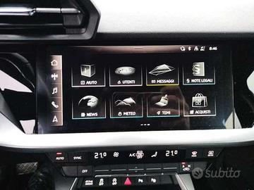 Allestimento “S line Edition” dotato dei seguenti optional:vernice metallizzata Blu Navarra,climatizzatore automatico bizona,sedili rivestiti in tessuto Index,schienale del sedile posteriore ribaltabile,inserto alla plancia in alluminio Spektrum scuro,profili plancia e cruscotto con finitura effetto seta Grigio Platino,volante multifunzione Plus in pelle a 3 razze,specchietto interno schermabile automaticamente,chiave Comfort,battitacchi anteriori con inserto in alluminio non illuminato,pacchetto luci d’ambiente,sistema di navigazione MMI Plus con MMI touch,Audi connect Navigation & Infotainment,Audi Virtual Cockpit da 10,25",Audi Smartphone Interface,ricezione radio digitale (DAB),2 Prese USB-C posteriori,Audi Drive Select per assetto di serie,Adaptive Speed Assist (ACC),pacchetto esterno lucido,Pacchetto Evolution,proiettori a LED con gruppi ottici posteriori a LED e indicatori di direzione dinamici,lavafari,sensore luci/pioggia,battitacchi anteriori con inserto in alluminio con logo S line illuminato,specchietti retrovisori esterni riscaldabili e ripiegabili elettricamente,sistema di ausilio al parcheggio plus con assistente al parcheggio,vetri posteriori e lunotto oscurati,assetto sportivo,cerchi in lega d'alluminio a 5 razze in design dinamico da 18″,indicatore perdita pressione pneumatici.