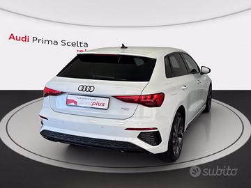 AUDI A3 sportback 45 1.4 tfsi e s line edition s-tronic color BIANCO GHIACCIO del 2024. La vettura è alimentata a Elettrica/benzina e ha un cambio Automatico.
