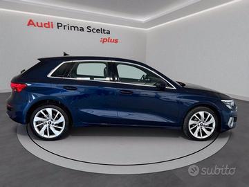 AUDI A3 sportback 30 1.0 tfsi mhev business advanced s-tronic color BLU NAVARRA MET del 2022. La vettura è alimentata a Elettrica/benzina e ha un cambio Automatico.