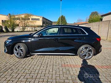 Vendo Audi A3 Sportback S line Edition in condizioni eccellenti, sempre tenuta con la massima cura. Motore benzina 1.5 TFSI da 150 CV con cambio automatico S tronic: brillante, fluida nella guida e affidabile. CARATTERISTICHE PRINCIPALI Allestimento S line interno ed esterno Fari Full LED con indicatori posteriori dinamici Pacchetto luci in tutta l'auto cambiabili di colore Cerchi da 18” con gomme Pirelli Vetri posteriori oscurati Volante sportivo in pelle appiattito Sedili sportivi in tessuto/semipelle con logo S line TECNOLOGIA E COMFORT Navigatore MMI Plus con MMI Touch Audi Connect Infotainment Climatizzatore automatico bizona Cruise control Sensori parcheggio Plus con telecamera posteriore Assistenza alla fermata CONDIZIONI E MANUTENZIONEAuto in ordine, senza lavori da fare. 🟢Tagliandi regolari e certificati Audi Service. 🟢Tagliando completo già incluso da effettuare in Audi. 🟢Garanzia motore Audi fino al 2028 o 80.000 km. 🟢Garanzia estesa sul motore certificata Audi Doppio set di tappetini (tessuto e gomma). Auto pronta all’uso. Vendo per passaggio ad auto più familiare. Prezzo leggermente trattabile.Contattare solo se realmente interessati.