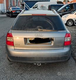 Vendo audi a4 1.9 130 CV 6 marce trazione integrale quattro. Tagliando appena effettuato da 7000 km, gancio traino estraibile omologato a libretto montato un paio di anni fa e utilizzato poche volte, appena sostituito cuscinetti anteriori con fattura, treno di gomme invernali montati su cerchi in lega da 16 due da sostituire e volendo treno di gomme estive su cerchi in lega da 17 due sicuramente da sostituire e due ancora utilizzabili. Auto perfetta di motore. Buone condizioni interne ed esterne. Disponibile a qualsiasi prova.