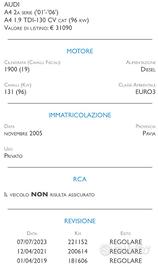 150 AUTO SU WWW.FCAUTO.IT - Audi A4 con 250mila km tagliandati, in perfette condizioni. Qualsiasi prova con il vostro meccanico di fiducia. L`auto viene venduta con la formula ``VISTA E PIACIUTA``. #- Anno 2005 #- 1.9 131Cv - Diesel #- 250000 km SCIVICI SU WHATSAPP PER SAPERE DOVE SI TROVA QUESTO VEICOLO. SOTTO IN DESCRIZIONE TROVERAI I NOSTRI INDIRIZZI